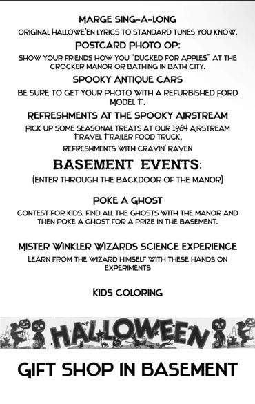 · 🧪 Kids Crafts & Hallowe’en Experiments: Hands-on fun for our younger guests.