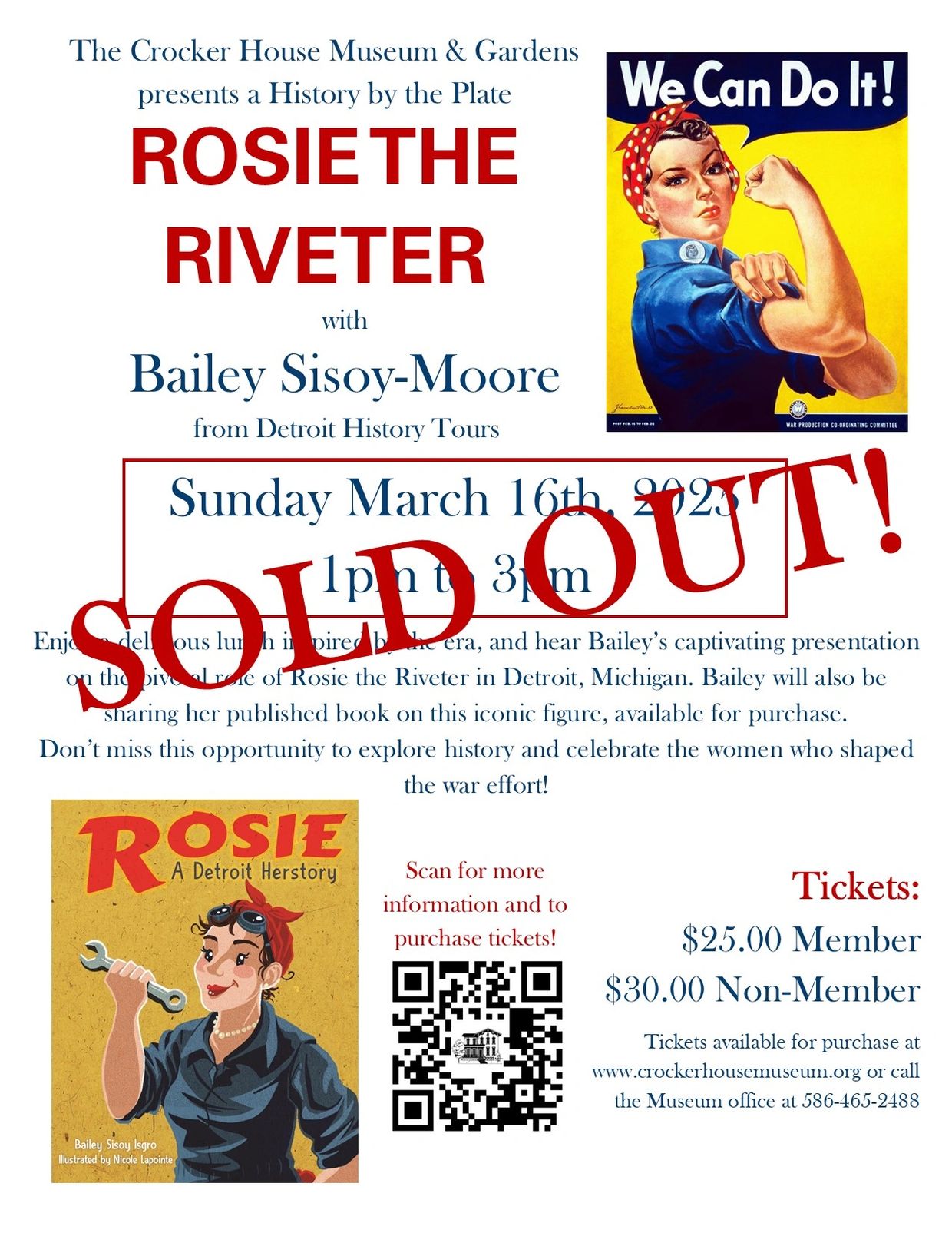 Join us at the Crocker House Museum and Gardens on March 16th, 2025, from 1:00 PM to 3:00 PM for a special WWII-themed event honoring Rosie the Riveter.